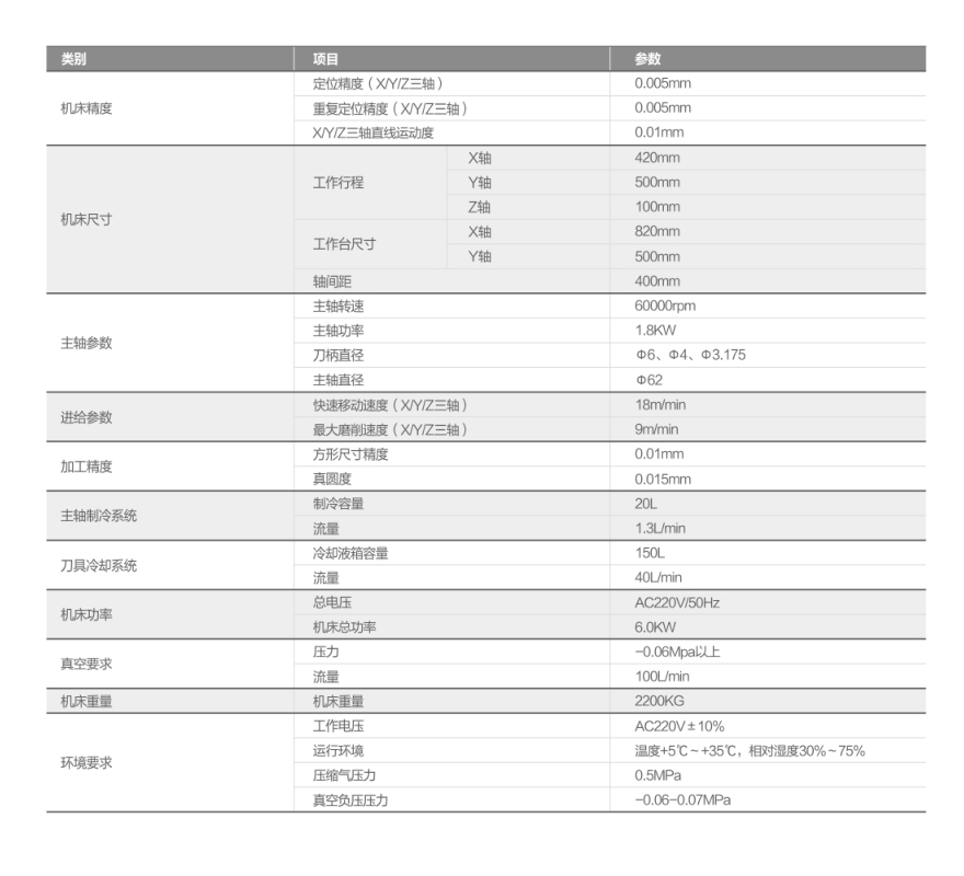 1.机床的床身及横梁材质为花岗岩,床身采用三点支撑结构,机床刚性更高,结构更稳定.
