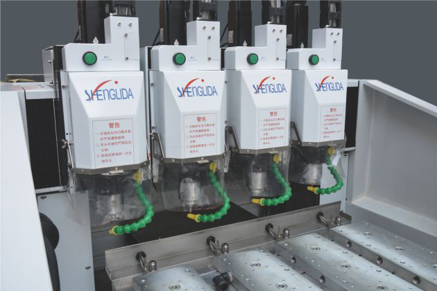 2. 机床配置四支切削主轴, 四工位工作台+紧凑4Z轴,一次加工四件产品 ,加工效率高.