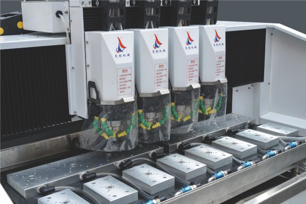 3.双排八工位工作台+紧凑4Z轴,实现循环加工,不停机换料,操作更安全.