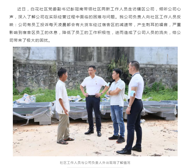 白花社区党委为公司排忧解难